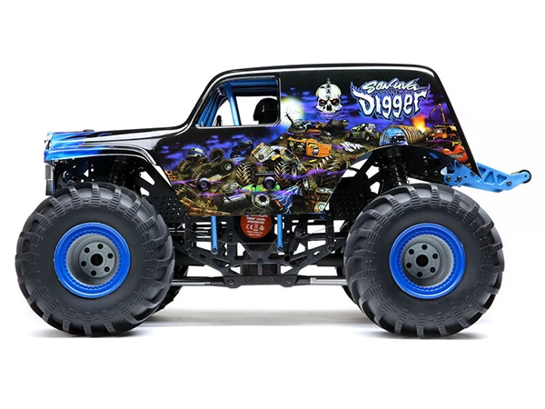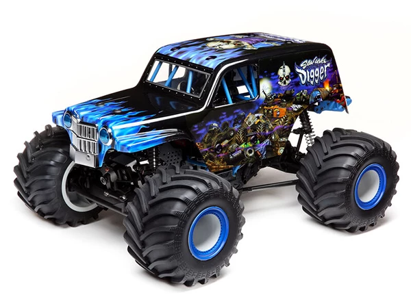 Completely designed from the ground up, the Losi® LMT 4WD Solid Axle Monster Truck is the first of its kind on the market combining all-out performance with incredible scale detail. Starting with the chassis, a twin vertical plate is designed to provide all of the performance adjustments needed to tune the truck for any situation. Whether you are a scale driver, a basher or a racer, the chassis is designed to accommodate multiple shock setups keeping you tracking straight, no matter the terrain. New multi-piece axle housings surround the 1/8th scale drivetrain. Additionally, the easy access center transmission comes stock with a center differential and allows for quick changes with the optional spool for that wheel standing action. For the true Monster truck experience, the axles also allow for optional 4-wheel steering and a new adjustable servo saver to keep the wheels pointed in the right direction. The Spektrumâ„¢ Firmaâ„¢ Smart 130 Amp ESC and 3150kv 4-pole Brushless motor allow you to unlock blazing speeds. Drivers stay in control with a DX3â„¢ transmitter and a Spektrum SR315 DSMR® 3-Channel Sport Receiver. A composite flip top cage adds scale realism and protection, as well as functionality so you can easily access your battery and electronics. Of course, the scale detail doesn’t stop there with headers, drivers and LED lights and we’ve teamed up with Monster Jam for your choice of a Grave Digger or Son-Uva Digger body. The LMT Monster Truck has just thrown down the gauntlet on solid axle monster trucks.